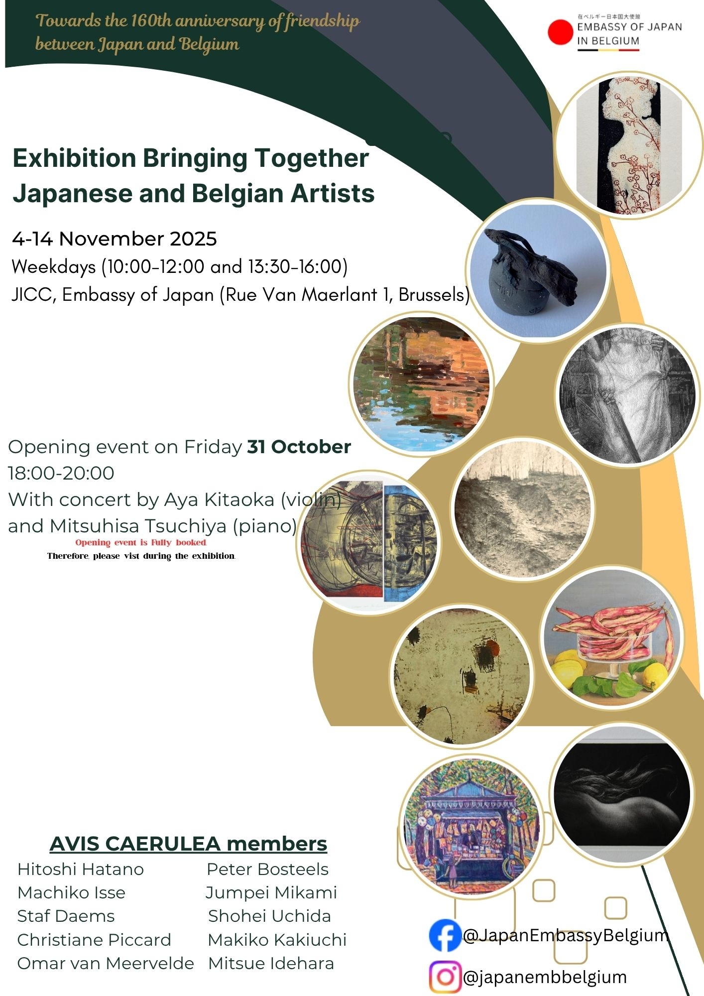 Towards the 160th anniversary of friendship between Japan and Belgium ''Exhibition Bringing Together Japanese and Belgian Artists'' To love freedom and peace, and to promote culture by engaging in friendly activi-ties through the arts. AVIS CAERULEA members: