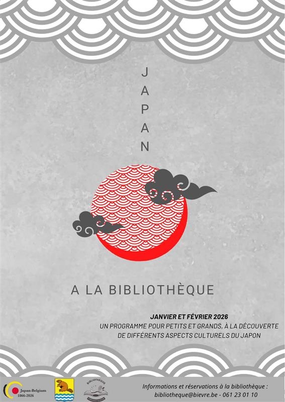 Around Japan Come and celebrate Japanese culture at the Bibliothèque communale de Bièvre, featuring activities such as origami, cooking, traditional games, and even learning about video games. Discover unique aspects of Japan in a fun and engaging way. Some activities may require a participation fee. Event Endorsement for the 160 Years of Friendship between Japan and Belgium in 2026 |