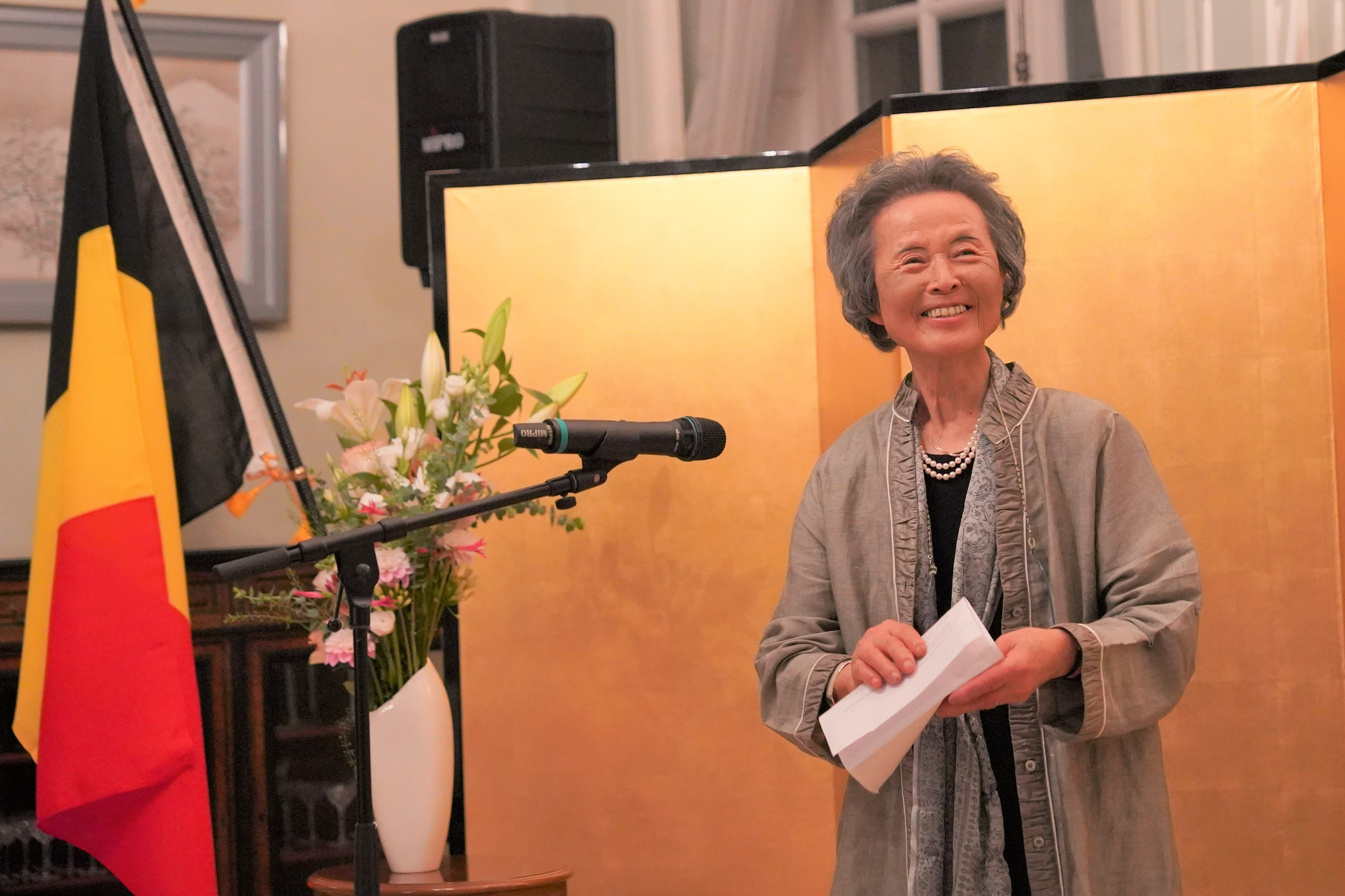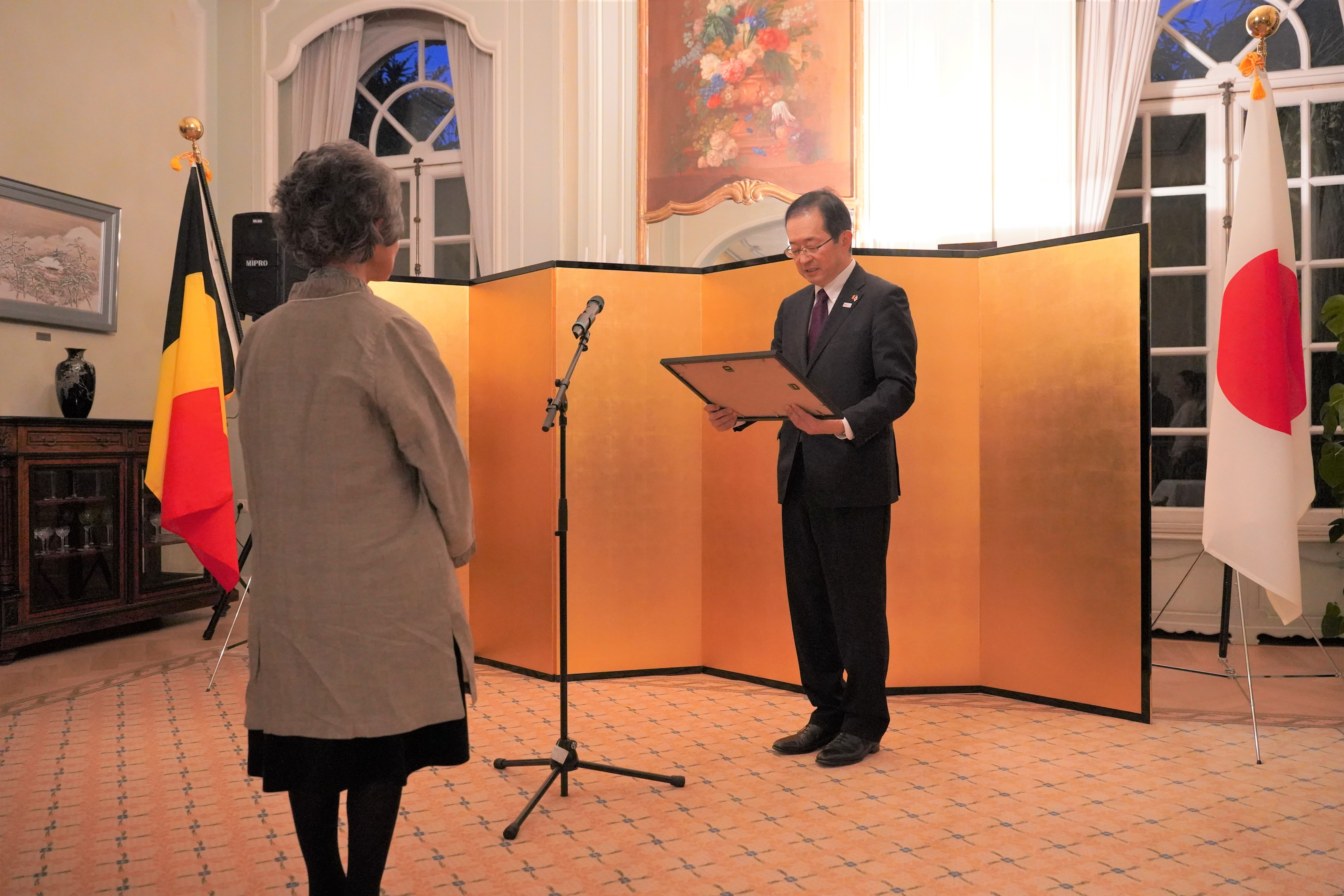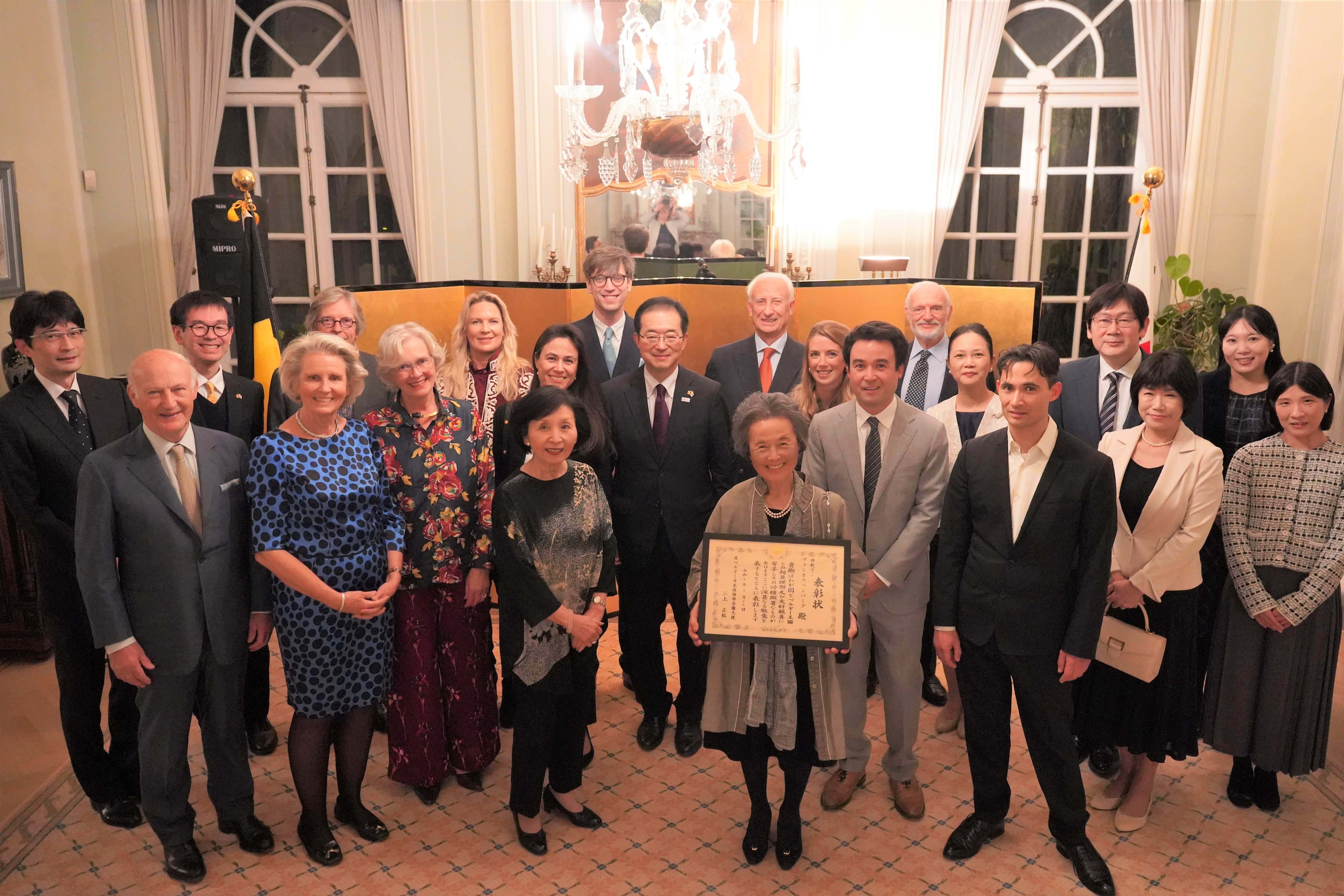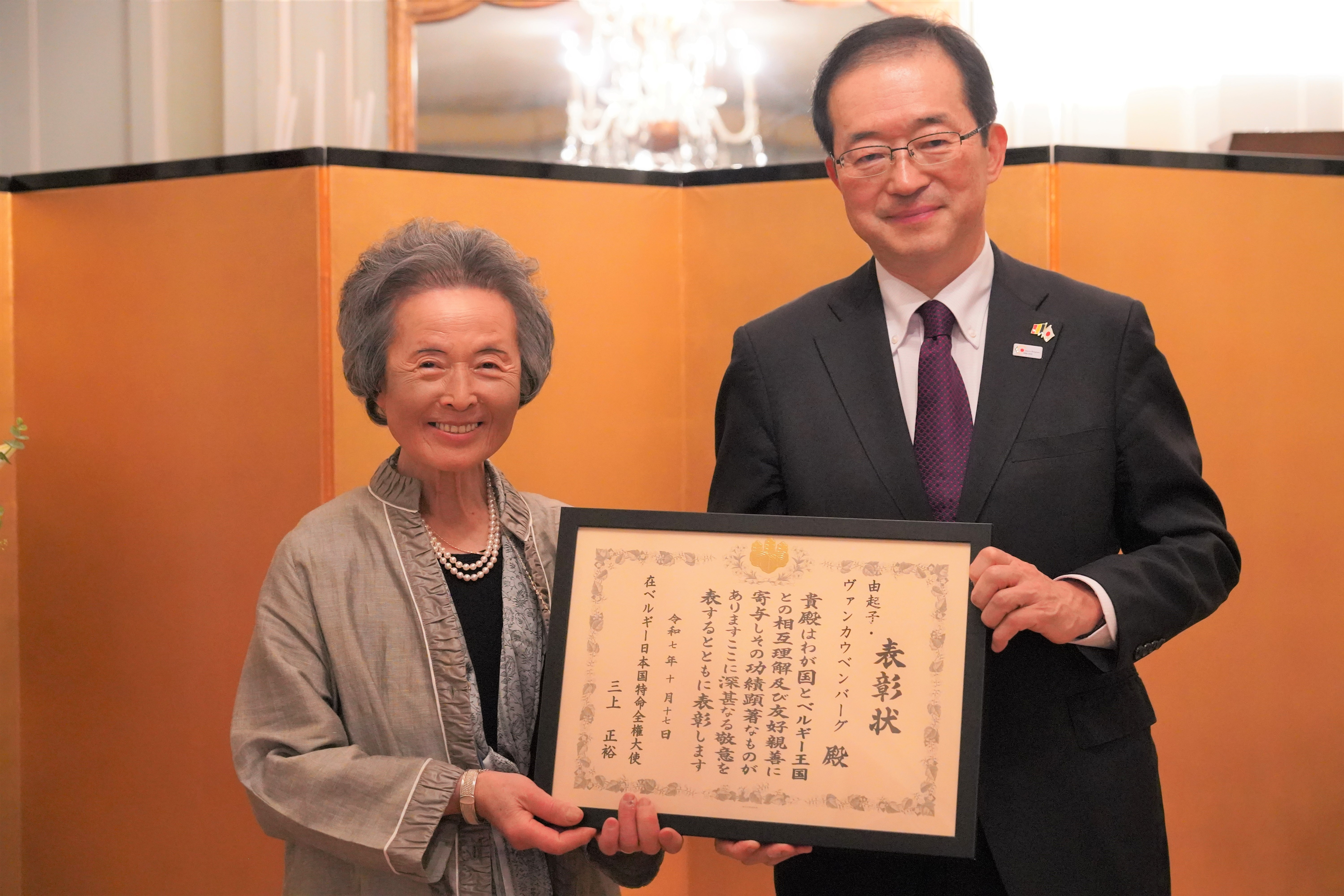 At the ceremony, Ambassador Mikami expressed deep gratitude and respect for Mrs. Van Cauwenberghe's longstanding contributions.