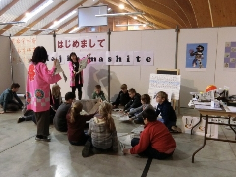 在ベルギー日本国大使館は,ベルギー日本語教師会の協力を得て日本語ワークショップを開催し,「はじめまして」「こんにちは」「ありがとう」といった簡単な表現を教え,文字の読み方,日本の新聞紙で「かぶと」を折る等の内容にて日本文化を紹介し,24チーム400人の児童に日本語を教えました。子ども達は皆,初めて学ぶ日本語に興味津々であり,積極的に学び,覚えたばかりの日本語を繰り返し練習している様子が印象的でした。